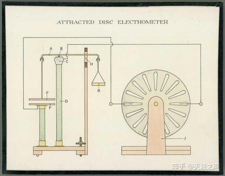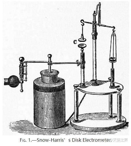 4.绝对静电计 4.1.哈里斯吸引圆盘静电计我们已经找到了3种半定量丈量电势差的办法,那么若何实现对电势差的绝对度量呢?上面提到的卡伐洛通草球静电计就能够。别的,我们晓得第二种半定量丈量办法”平行板电容器法“,就能够实现绝对丈量,哈里斯爵士改良的吸引圆盘静电计就是操纵那个原理。很明显,他的静电计是对伏打圆盘静电计的改良。