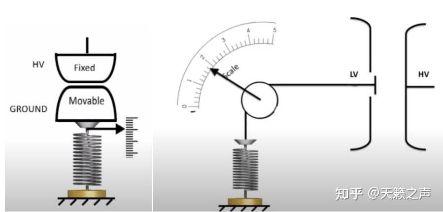 绝对静电计革新的电压表通过给弹簧或者给滑轮加拆指针,就能够把那种静电计做成间接读数的静电电压表。