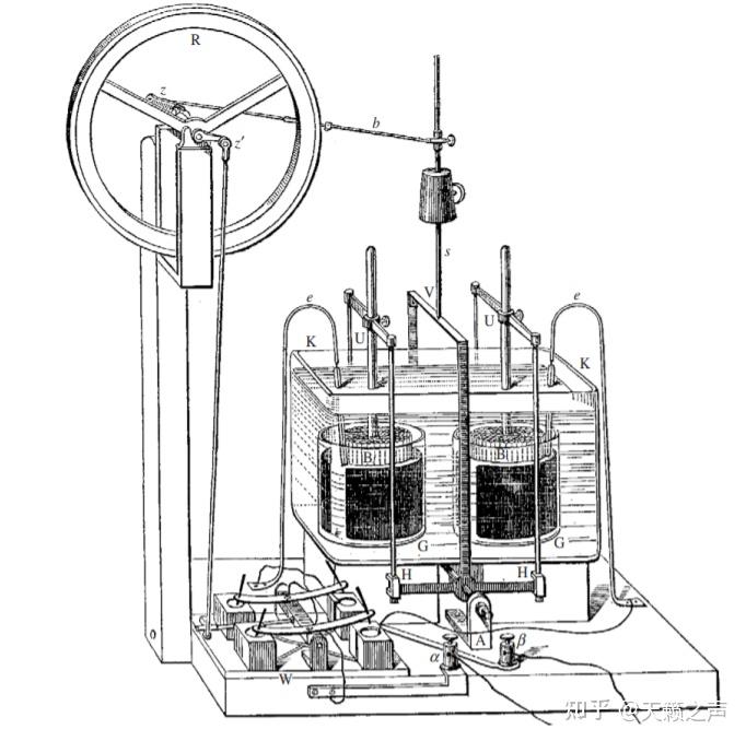 汤姆逊绝对静电计构造图需要指出那种静电计只能用于高电压的绝对丈量,不外那却足以把绝对丈量再往前推一步:前面刚刚提到一种半定量丈量办法——串联电池电势差定标法,那是基于”在不异构造的电池串联时,电压于电池数量成反比“。若是我们把上千个电池串联的话,在把它们的正负极毗连到静电计的两个圆盘上,就能够操纵上面的法子对他们停止电势差的绝对丈量。测出电池组的电压后,再除以电池组串联的尺度电池的数量,就能够定出尺度电池的电势差。