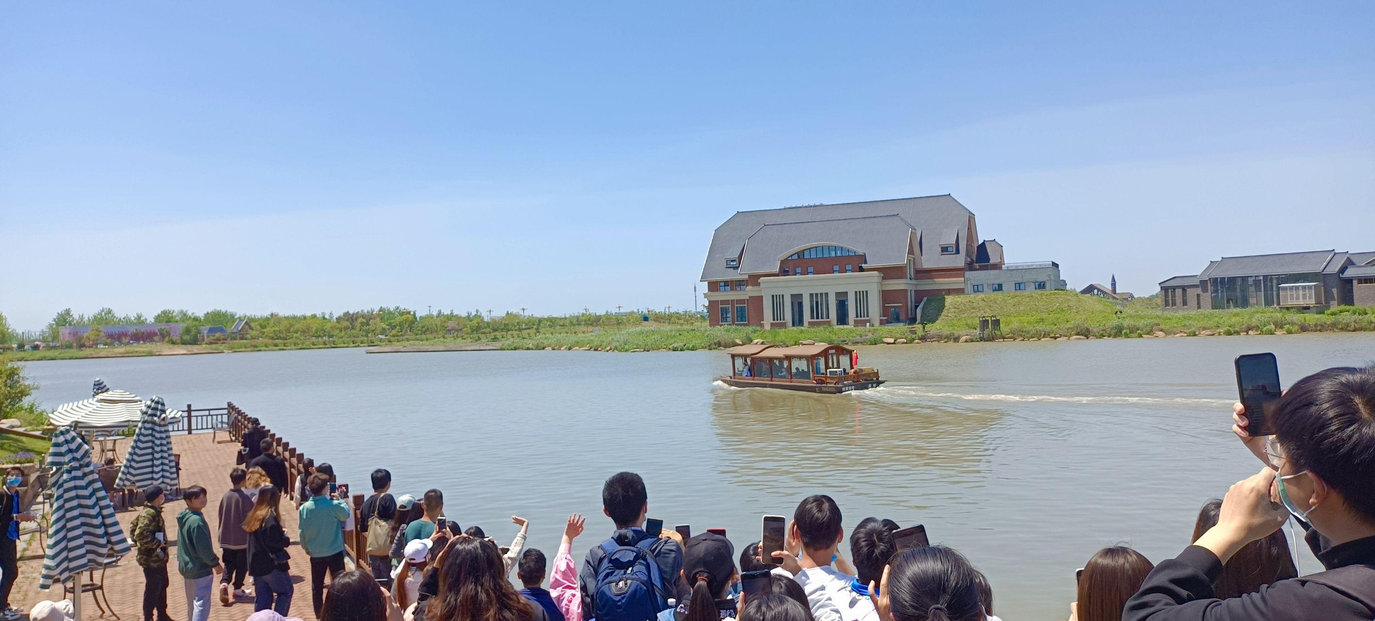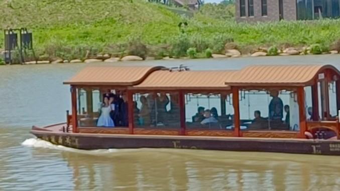 我看到的画面,似乎童话世界一般,穿戴白色裙子的文雅的公主站在船上,浅笑着朝岸边上浩瀚的逃求者挥手,但中间隔着十几米的江水,也表示着公主不属于我们常人的世界,只可远不雅而不成亵玩~~