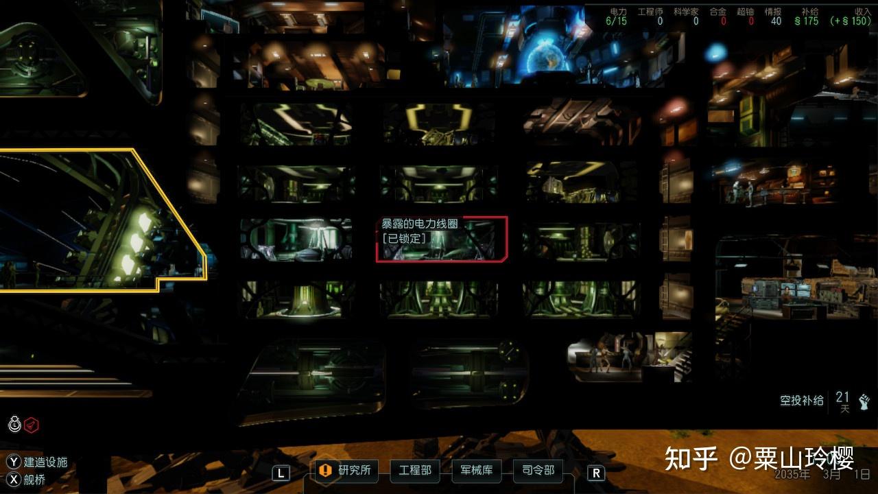 开局的时候,初始电力是6/15点,也就是只要9点电力空余,开局时消耗5点电力的阴影舱和灵能尝试室还没研究出来,那时9点电力相当于能够建立3个设备(不带晋级),那么开局时初期保举造的设备如下:
