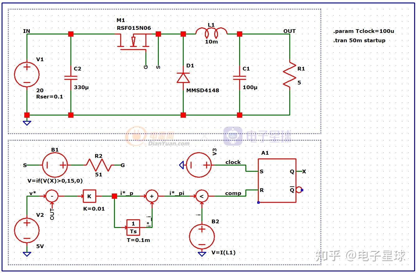 本篇文章为LTspice仿实-Buck电压反应的续篇,仿实大同小异,区别在于电压单环反应的B2由锯齿波改换为输出电感L1的电流。