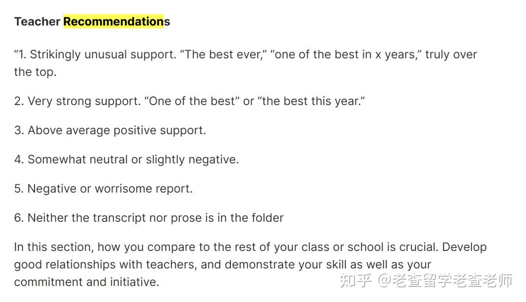 哈佛大学会对Teacher Recommendations停止打分,总共分为1-6分,1分更高,6分更低。