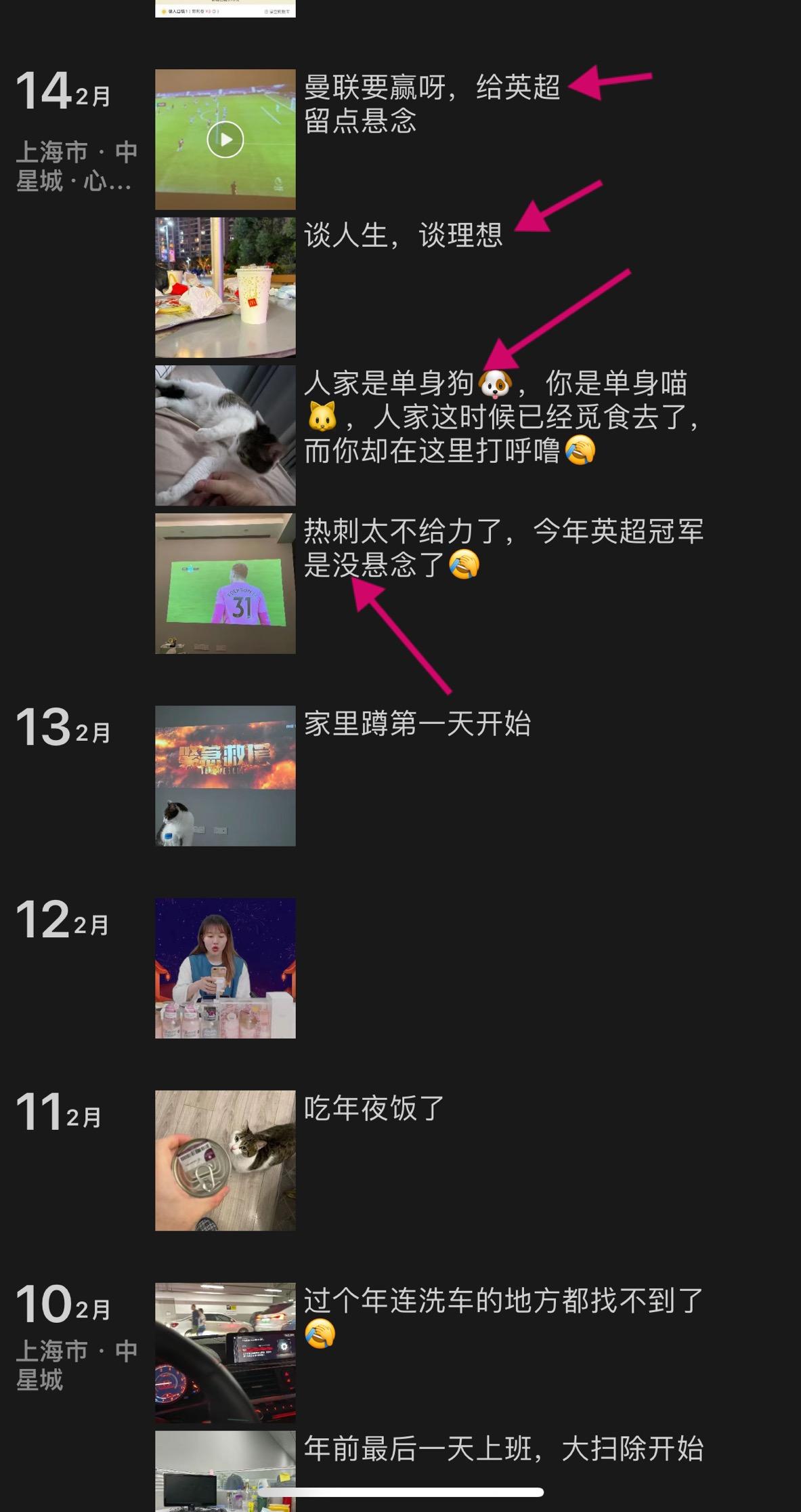 和阿谁相亲男也是有一句没一句的聊着,豪情不温不火中似乎也有些停顿。他告诉我年前送我恋人节礼品的时候就已经确定和我在一路了,而且十分喜好我,惧怕的是我看不上他罢了。(可是后面我才晓得他2.14号又去相亲了,相亲的是一个研究生女生,父母都是 *** 单元的。把他回绝了,也不经意看到了他和阿谁女生的聊天,但都是后面才晓得的,包罗他的伴侣圈2.14那天还颁布发表着独身无聊可撩可碰头的动态见下图)
