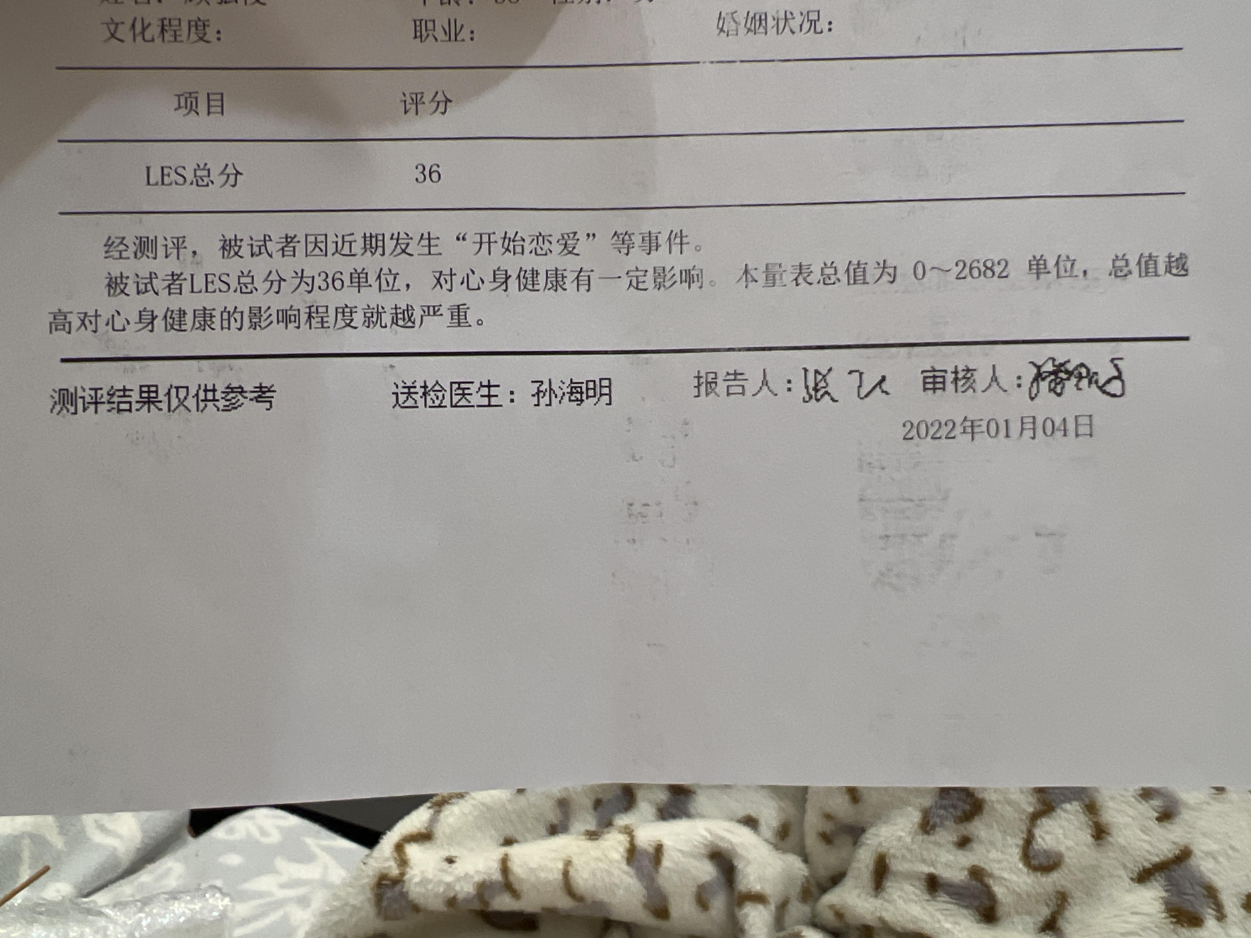 男友进来后,坐在凳子上有些狭隘 不安不屑一顾的说道:有点严重。医生紧接着问他为什么严重?他苦笑说之一次来神经病病院啊。(其实我晓得他面临目生确实总会如许严重不安的)医生随之开了一个严重性测试标题问题缴费单,随后又问他做什么工做,工做有出差吗?为什么要来神经病病院?男友很流利的答复了他的工做问题又说是被我拉着来的。扳谈时间共五分钟后就让男友去测试标题问题了,我慌忙说道他没有法子主不雅的去做标题问题的,因为在家我给他做测试他都很难目不斜视答复,或者答复的和他本身不契合,有没有间接用仪器测试的办法啊?医生很不耐烦的怼给我一句话:你怎么那么判定他不克不及本身做标题问题啊?先去做好吧?