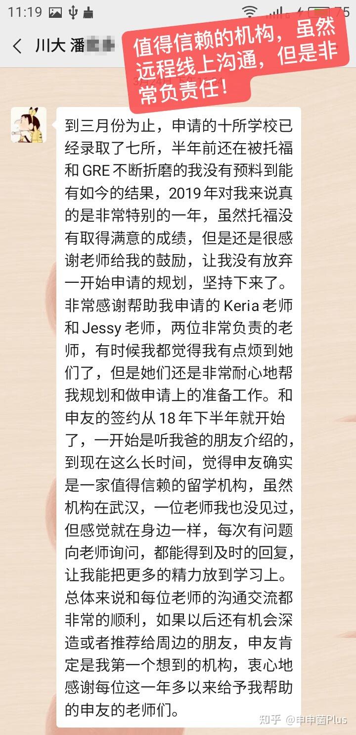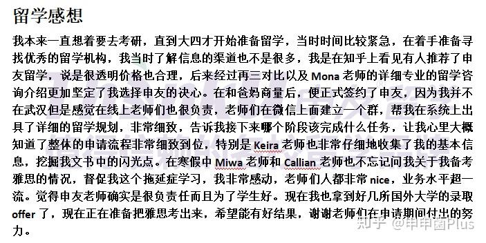 留学中介哪家好?留学中介怎么选?留学中介哪家靠谱?诸如斯类的问题,我想知乎上一搜就会呈现一堆。其实任何有出国设法的同窗城市履历那么个阶段:出国留学到底是找机构仍是diy,找机构的话,我到底该选择哪个机构?看到网上那么多人说本身被坑的履历,深怕本身选到一个黑中介,从而浪费本身的时间,精神还有金钱。说实话,实的十分理解,其实留学行业之前不是如许的,就是因为一个行业开展到必然的阶段,就会有那么些人那么些公司,只想着捞钱,从而松弛了行业的风气,其实留学中介,归根到底其实就是个办事公司,甲方乙方的关系罢了,各人选择找中介而不本身diy,无非就是觉得中介能帮你填补申请中的不敷,例如说时间,文笔等。所以想要找到一家好的中介机构,其实就是要看口碑,也就是我们说的体验感,究竟结果留学是个相对持久的过程,环环相扣,申请过程中你碰到的每个教师,例如说留学参谋,留学规划师,申请教师,文书教师,测验辅导教师等是不是专业负责与你相处和谐长短常重要的,机构好欠好不在于那个机构自己,而在于给你办事的教师是不是专业靠谱负责的,所以你会看到有些机构良多人说体验感很好,也有人说很欠好,那可能就是差别的办事教师产生的成果差别,说实话,每家机构或多或少城市有好或者欠好的评价,那个无可厚非,究竟结果每小我的情况纷歧样,就好像你 *** 买工具看评价一样,必然会存在好评和差评,因为工具都是一样的,利用的人是都纷歧样的,所以就会存在差别性,就好像plus学姐很喜好周杰伦一样,我觉得周杰伦新出的歌:我是如斯相信,我觉得很好听,但是仍是会有些人觉得他的歌很一般,没有前进,因为每小我的评价尺度纷歧样,不克不及做到完全的同一,所以那边plus学姐强烈建议各人在比照机构的时候,可以站在本身现实情况之上,理智的停止选择和阐发。