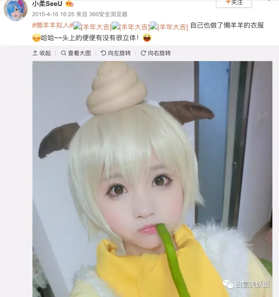 想昔时,玩cosplay起身的小柔化身懒羊羊,和粉丝热聊: