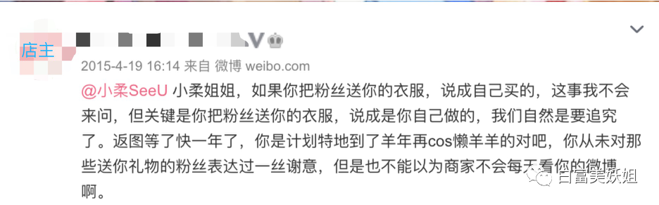 什么本身做的,明明是粉丝从我店里买来送给小柔的!