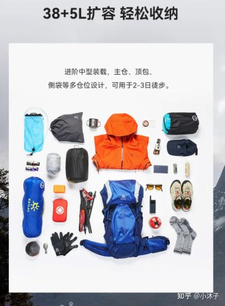 适用场景:短途1-2天,户外徒步、爬山、日常休闲、短途游览体积:40L重量:1250g特点:外形时髦(也合适日常休闲),轻量化设想、大空间多仓层、透气缓压背负系统、周全外挂系统(撑持帐篷、防潮垫、爬山杖等)、能够扩容、防水性强。