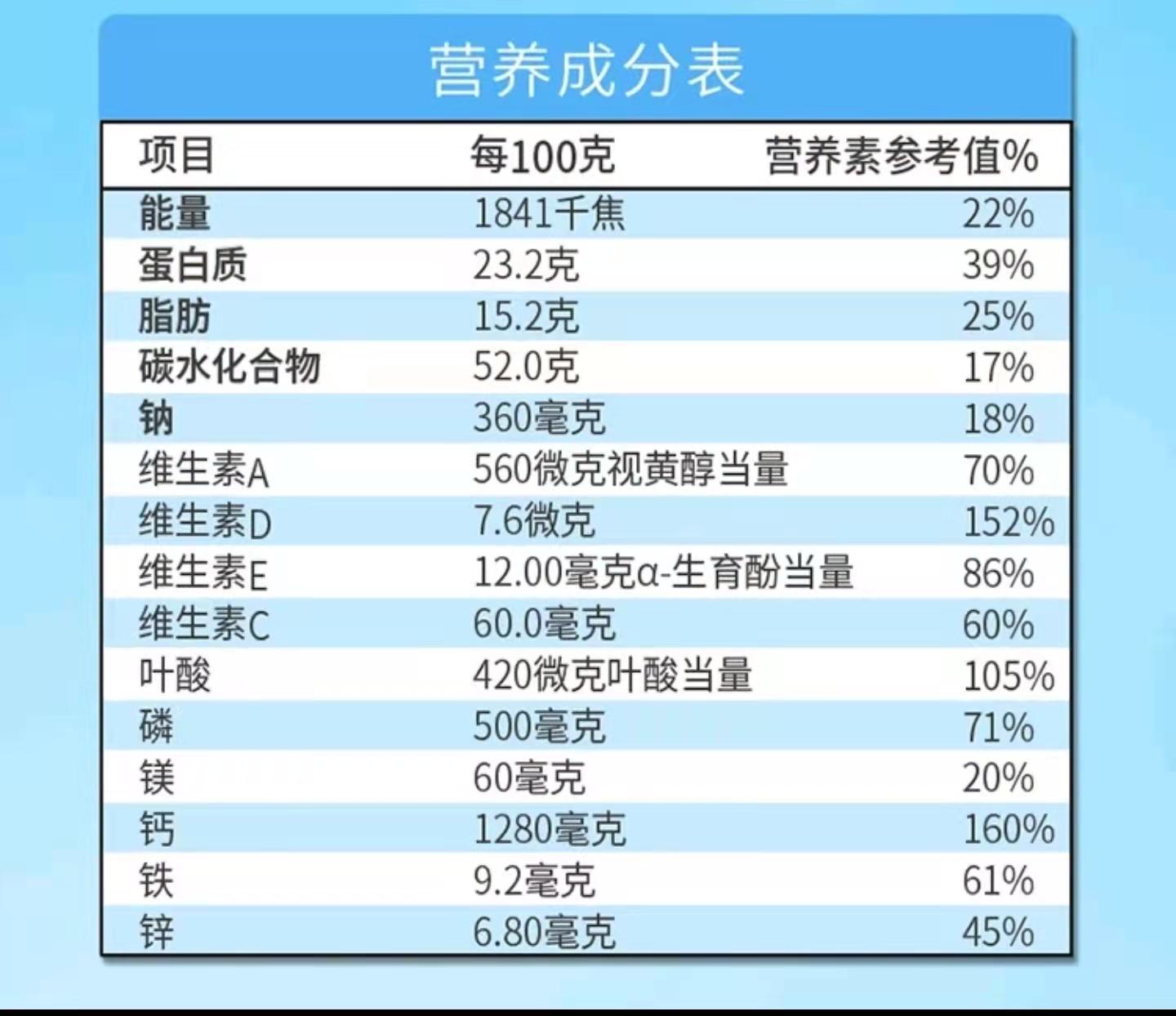 二看维生素类如维生素A、维生素D、维生素C、部门B族维生素能否丰硕,微量元素如钙、铁、锌、磷能否都包罗并明白含量。