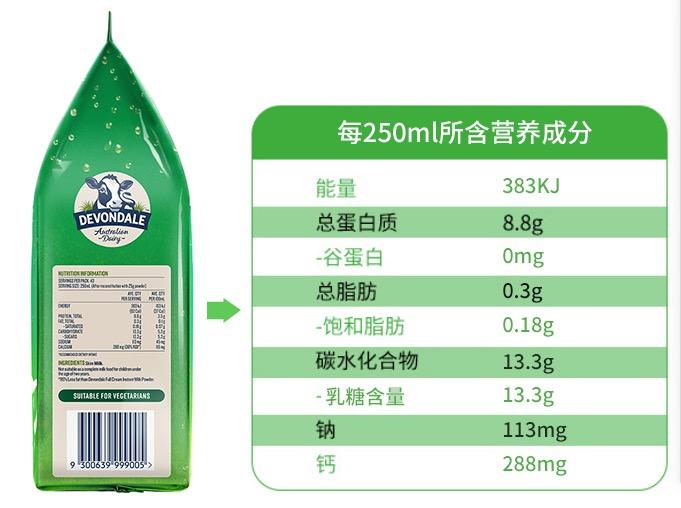 德运(Devondale)澳洲原拆进口 高钙脱脂成人奶粉1kg