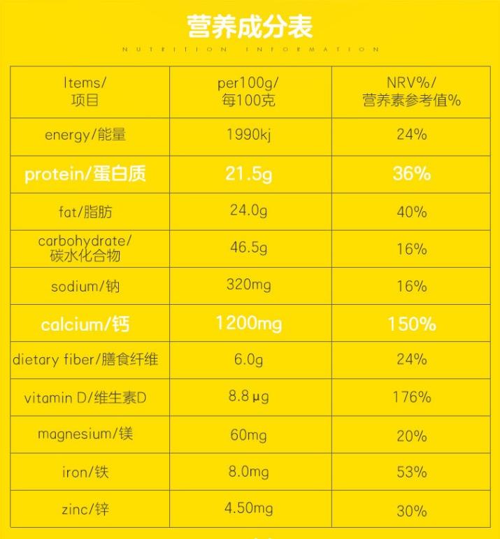 一看营养成分表中一般要标明卵白量、脂肪、碳水化合物等根本营养成分及对应热量。