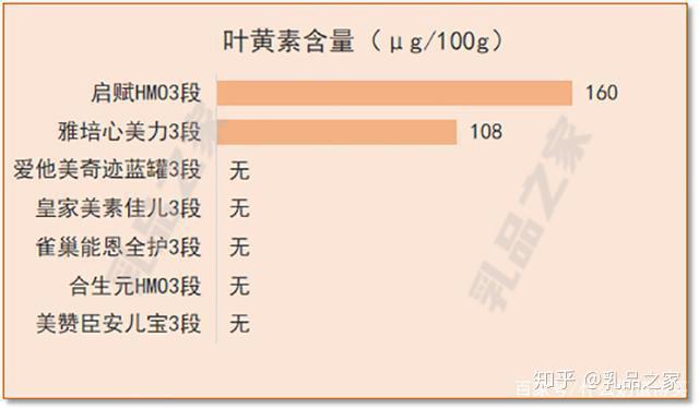 本期测评的7款跨境购奶粉中,只要启赋3段、雅培心美力3段那两款奶粉含有叶黄素成分。每100克奶粉叶黄素含量别离是:160μg、108μg。