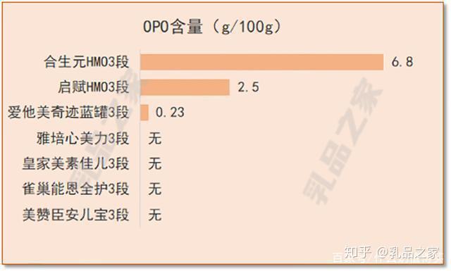 本期测评的7款跨境购奶粉中,只要合生元3段、启赋3段、爱他美3段添加OPO成分,此中,合生元3段每100克奶粉HMO含量是6.8克,整体表示最凸起。