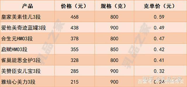 小结:在本期测评的7款跨境购奶粉中,皇家美素佳儿3段每克单价是0.59元,在整体克单价里更高的。雅培心美力3段克单价是0.24元,是那7款奶粉中克单价更低的。若是每罐的规格同一是800克的话,那7款奶粉的价格区间大要是192元-472元。不难发现,整罐800克的奶粉更低价格和更高价格差距仍是挺大的。价格更低的奶粉HMO含量更低。价格更高的奶粉HMO含量并非更高的,由此可见,若是只从HMO含量来说,皇家美素佳儿3段是支持不起那个价格的,消费者必然要引起留意。