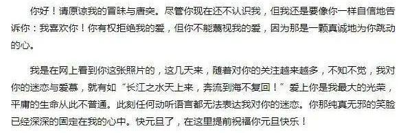 (求爱信内容)凭仗着其时的人肉搜刮功用,猫扑网友很快掌握了章泽天的详细信息,而且掌握了她大量的生活照。