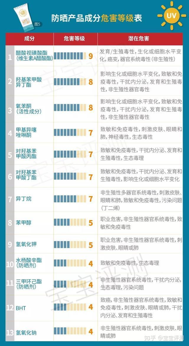 平安性:防晒霜中的易招致皮肤过敏和激素紊乱物量。