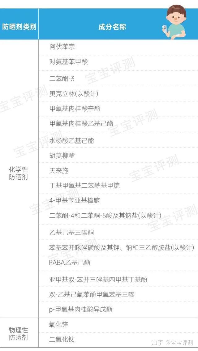 下图是笨爸爸汇总的常用化学性防晒剂和物理性防晒剂成分。购置防晒霜时,各人能够看产物标签上的成分辩别防晒剂类型。