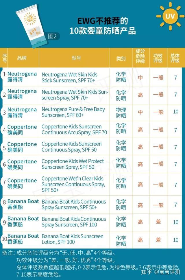在EWG的不保举名单里,香蕉船有三款产物平安品级被评为7-10级,属于“高度风险”。