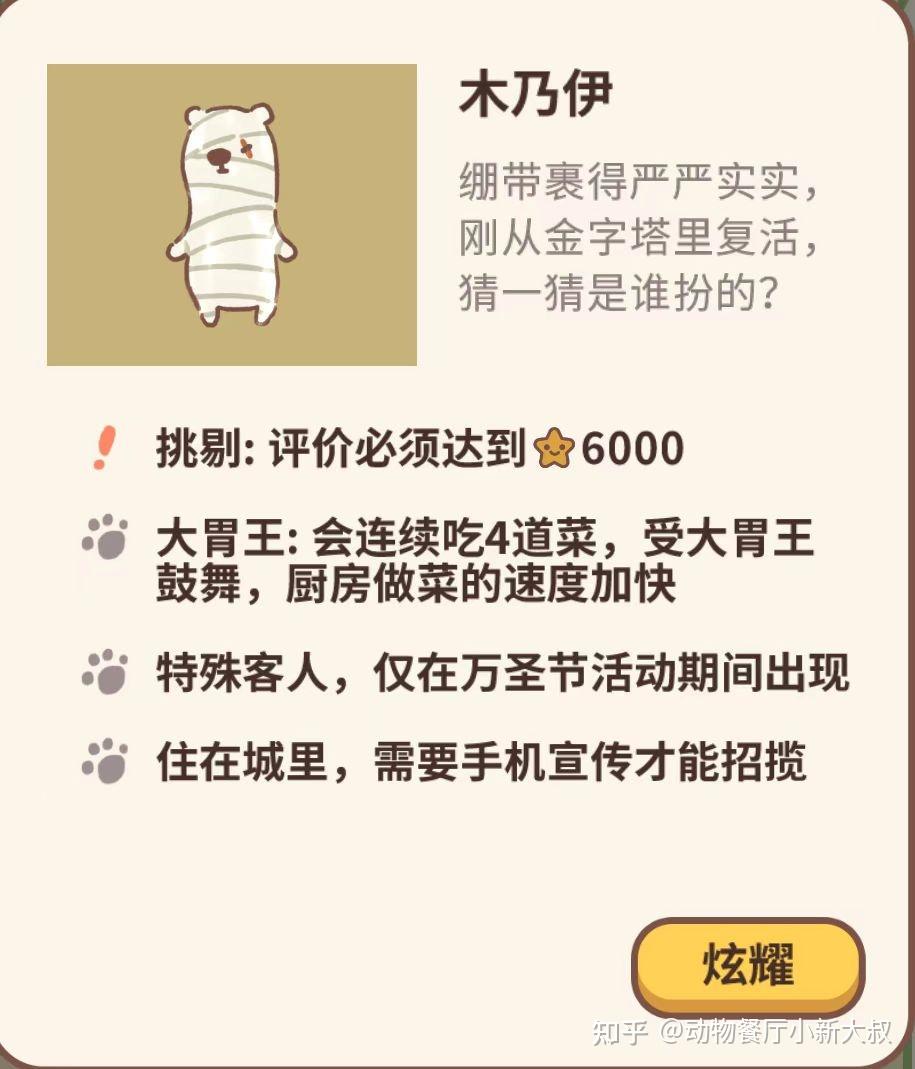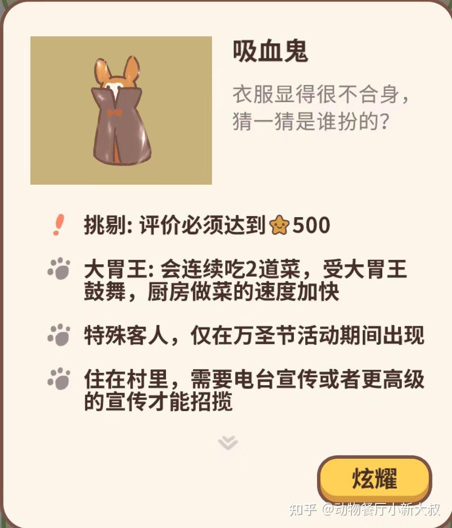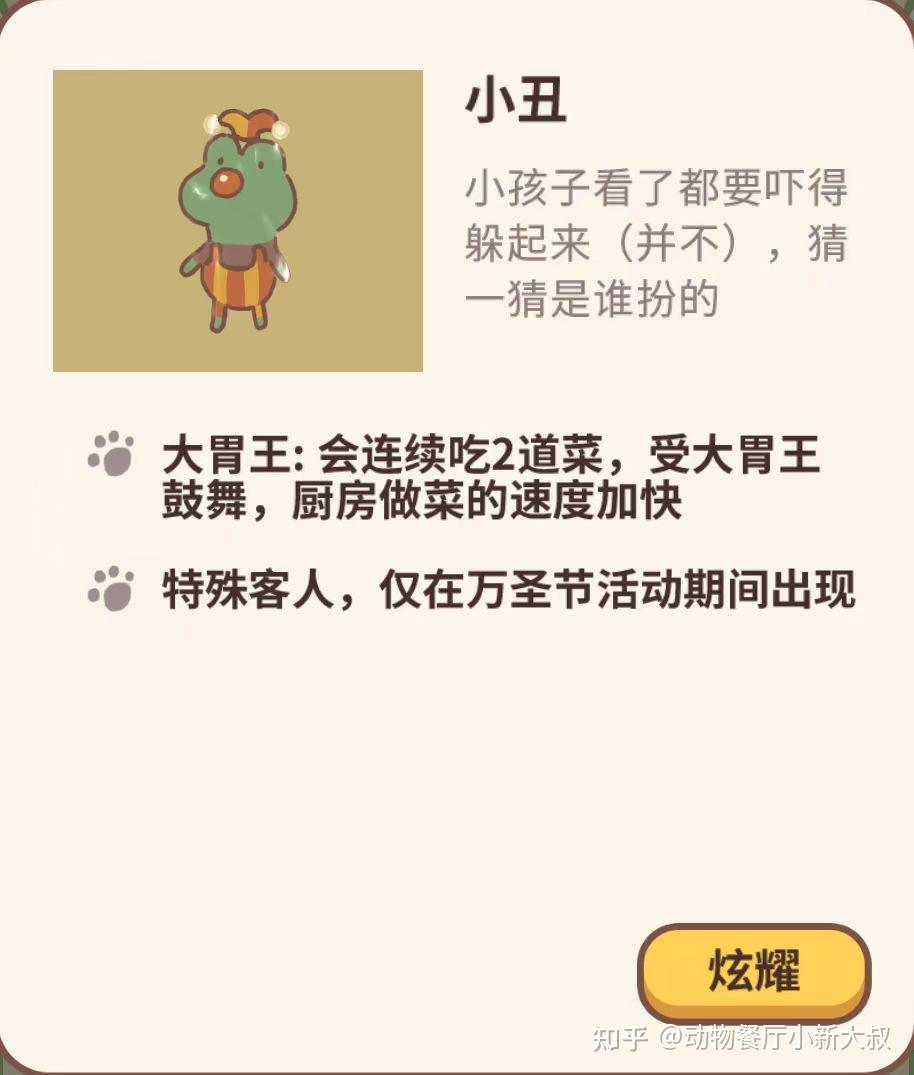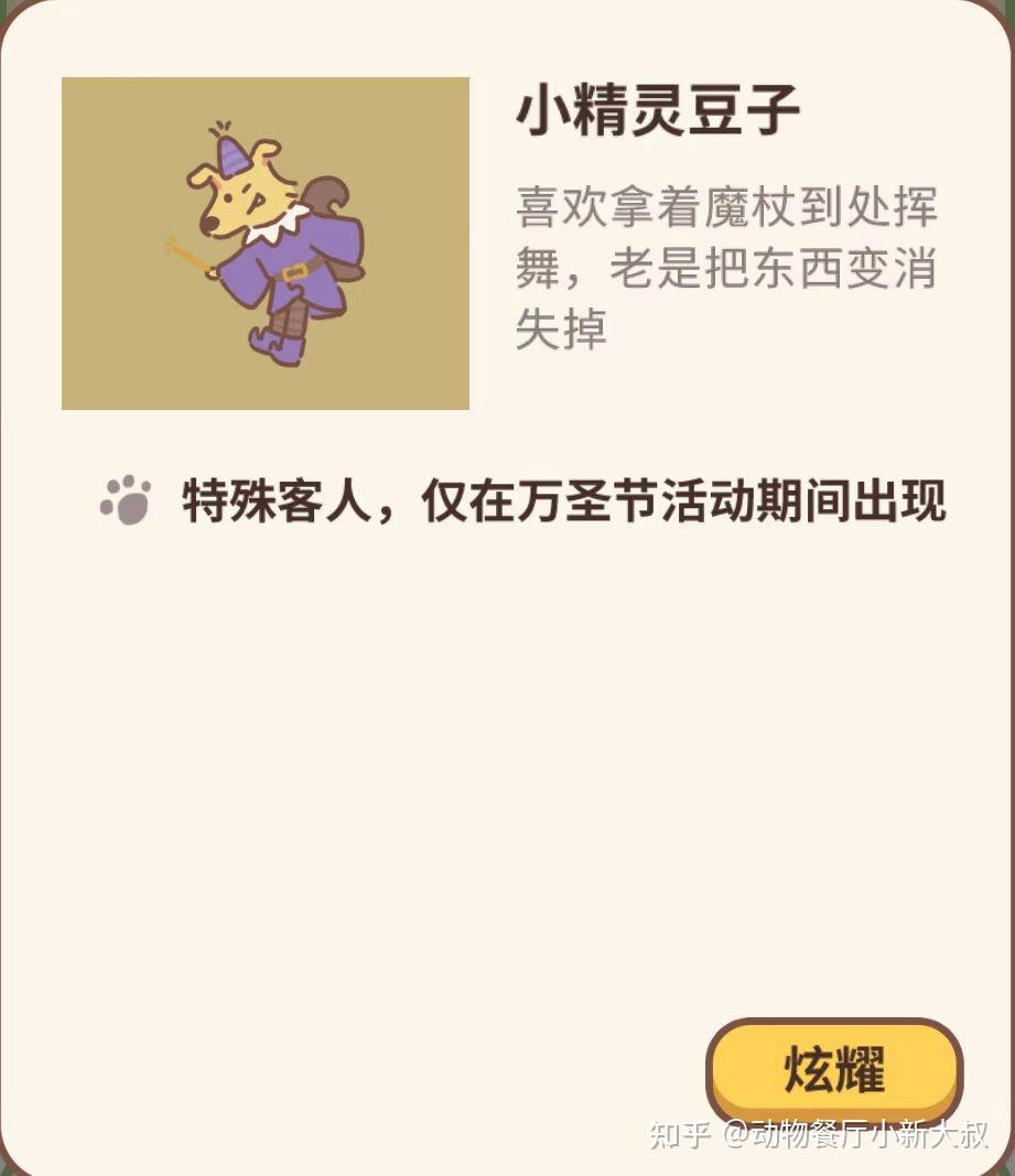 上面的6个万圣节限制客人是2020年更新的那些万圣节客人解锁不需要什么前提只需要有万圣节的糖果就有有概率来刚刚有说到万圣节糖果的获得渠道一个是每日登岸游戏进入活动页面领取第二个就是老南瓜会来餐厅撒糖果建议各人能够每隔7分钟从头上线,大要率老南瓜也会上线来撒糖公然后那万圣节的客人也没有时间的限造若是你有没解锁的万圣节客人那么在活动完毕之后也可在乌鸦商人那里买到那些糖果,然后招来上面那些客人