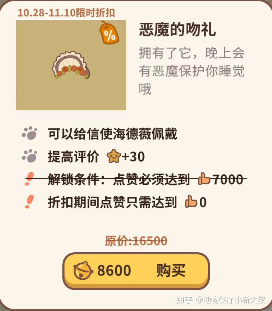 最初,有4个纪念物是今天才在摘牌商铺里面更新的并且有打折购置的前提也不受限造打折时间有限造只在10月28号到11月10号期间大折折扣将近5折,小新大叔是建议各人攒一攒铃铛尽量打折去购置,如许性价比高一些关于更多万圣节的内容各人也能够考古一下下面那篇去年小新大叔写的万圣节攻略哦~动物餐厅万圣节活动攻略上线!