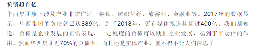 1994年成立的华西集团,七十亿固定资产涵盖了造造、旅游办事等多类财产。
