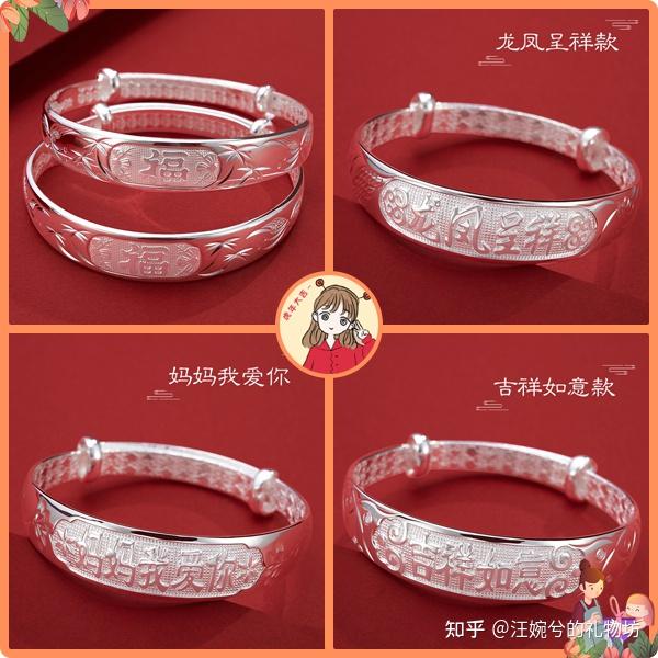 那款手镯繁花相刻,饱含镶嵌有“福”、“龙凤呈祥”、“不祥如意”、“妈妈我爱你”...真诚祝愿黑剖明,999足银送给妈妈也十分有诚意哦。整体设想更显沉稳大气,十分合适妈妈们日常佩带~
