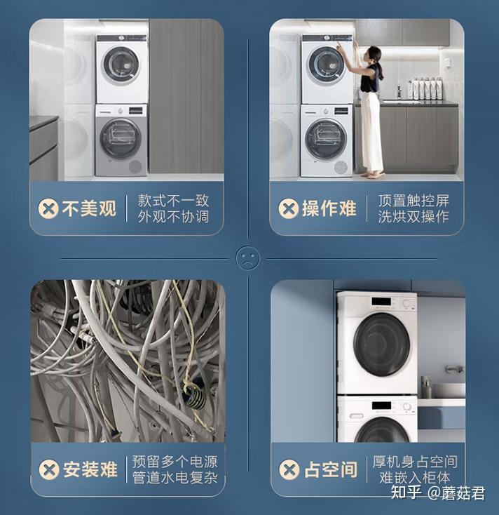 图源收集小结:不难看出,洗烘一体机和洗烘套拆同样是带有洗衣和烘干组合功用的洗衣机,两者各有优缺点,若是拆修时预留的空间足够,预算也比力丰裕,建议各人选择洗烘套拆,能有更好的洗烘体验;当然,若是预算不敷或拆修时预留的空间不敷,那就选择性价比更高的洗烘一体机。