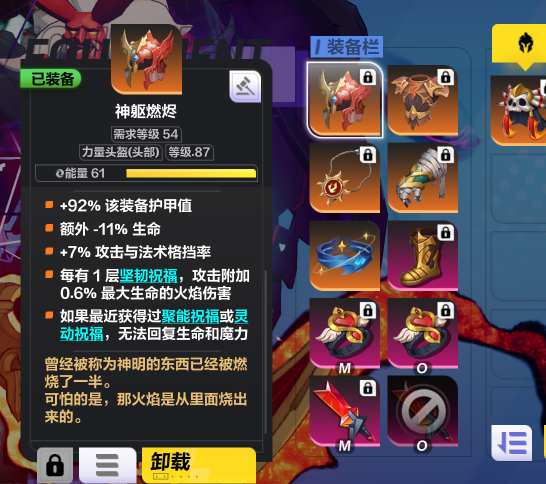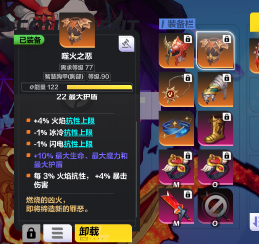 火甲 堆叠火焰抗性能够增加暴击危险 并且堆抗性又能加血