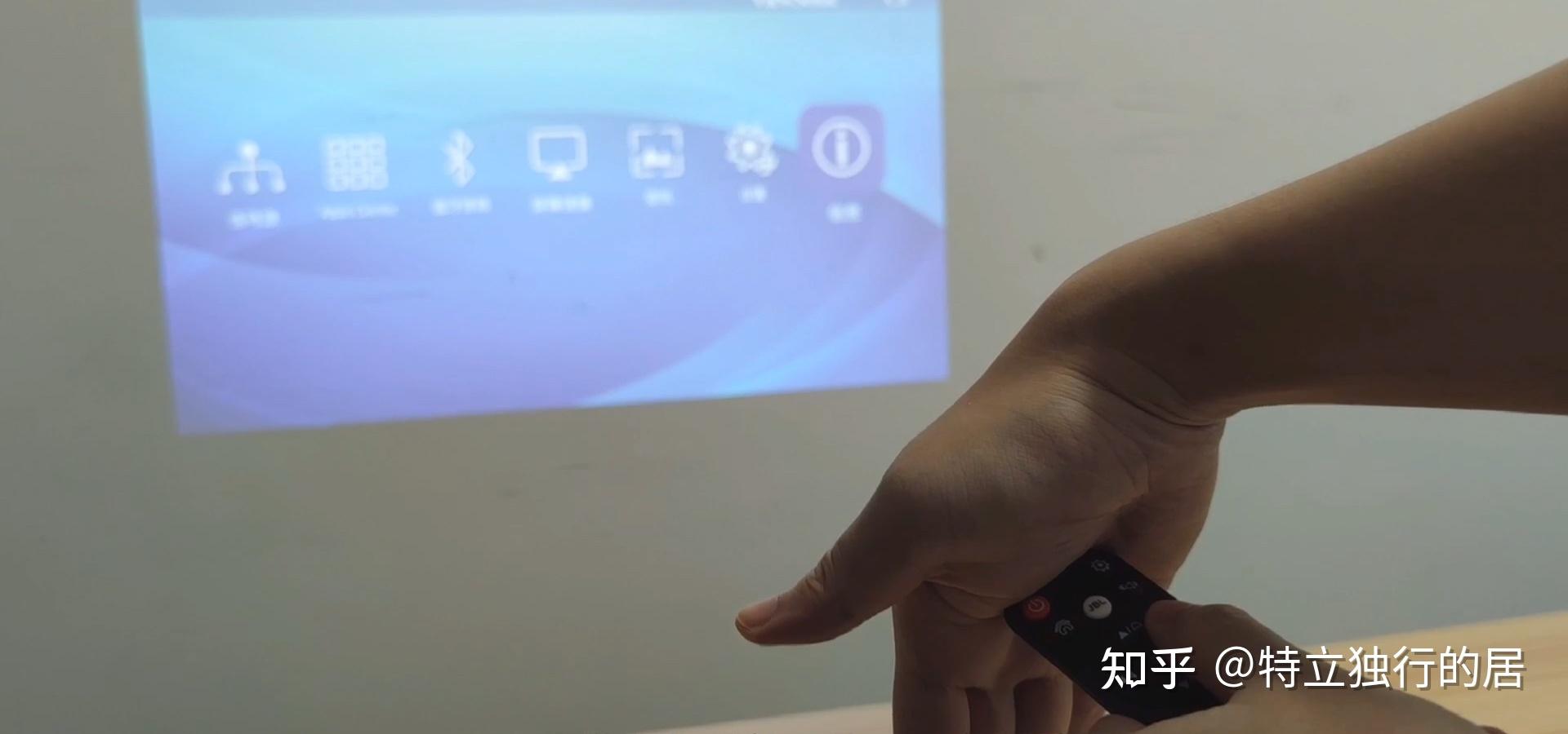 然后就是按键不太灵敏,有时候按了没反响,后来我发现优派M1+用的是红外线遥控器,投影仪和遥控器之间不克不及有遮挡物才气利用,同样用红外线遥控器的还有坚果微果i6。