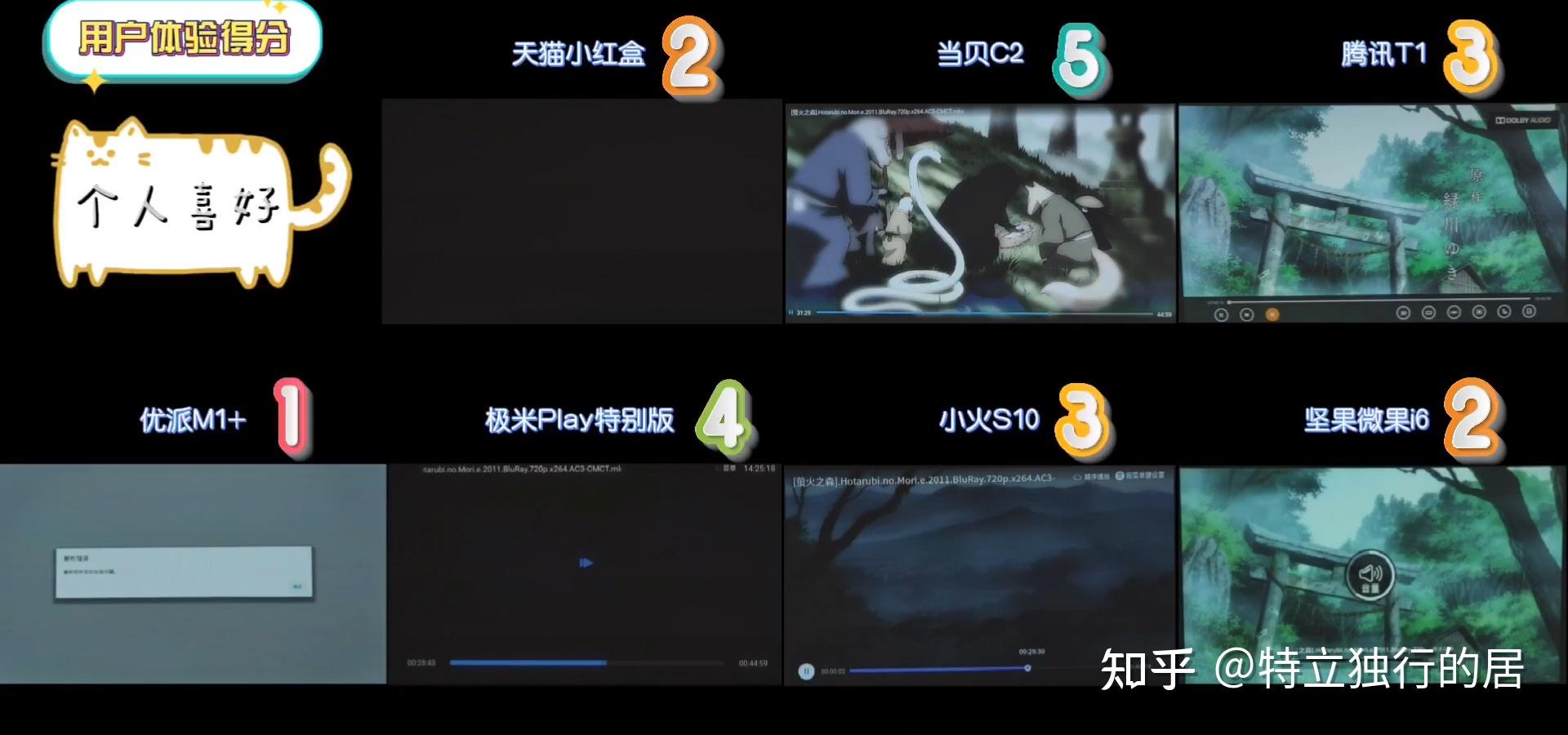 它们的原生播放器兼容性也差别,细心的伴侣可能留意到萤火之森比照画面的字幕纷歧样,我用的播放源文件是Mkv格局,能一般显示字幕和音频的只要当贝C2和极米Play出格版,其他的不是没声音就是没字幕,优派M1+更过火,连画面都没有,还要额外下载一个播放器才气用。