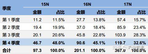 公司收入呈现明显季节性特征。2015~2017年,公司下半年收入占全年收入比例超越40%摆布,4季度销售占比更大。次要因为:1、接近年末,浩瀚电商、品牌商为突击全年销售起头增加告白投入、促销活动;2、受国庆节、双11、双12、圣诞购物季、元旦等节日因素影响,具有大量营销活动。公司分季度收入(单元:百万元)