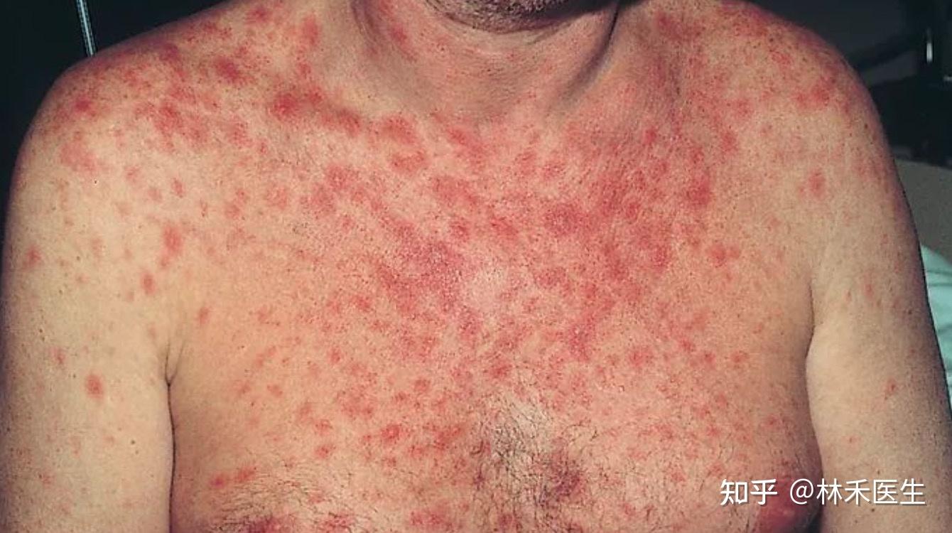 5.2皮疹 该图片有可能会引起不适 继续查看皮疹特点:急性期皮疹的持续时间短暂,lapins等[20]的一项22 例急性期皮肤黏膜特点的研究发现,大大都患者在发热二三天后呈现皮疹,表示为数量不等的曲径 0.5~1 cm、卵形或圆形、暗红色到深红色斑疹、 斑丘疹。鸿沟清晰,不交融。无自觉症状。次要散布在 上胸部,尤其在领圈区。也可发作在面部,额头和头皮,四肢少见。皮疹一般持续 5~8 d。在所有症状中,诊断急性HIV-1传染敏感性最强的症状是发热和身体不适感,特异性最强的量变是体重下降和口腔溃疡。也有研究表白当发热和皮疹同时呈现时,陪伴口腔溃疡和咽炎,是最有价值的目标。