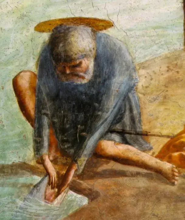 图23. 布鲁内莱斯基,圣彼得,大理石雕塑,做于1413年前后,高243厘米,现陈列于佛罗伦萨圣弥额尔教堂博物馆 | 图片来源: *** 2.4. 布兰卡契小礼拜堂中其它几幅壁画简介