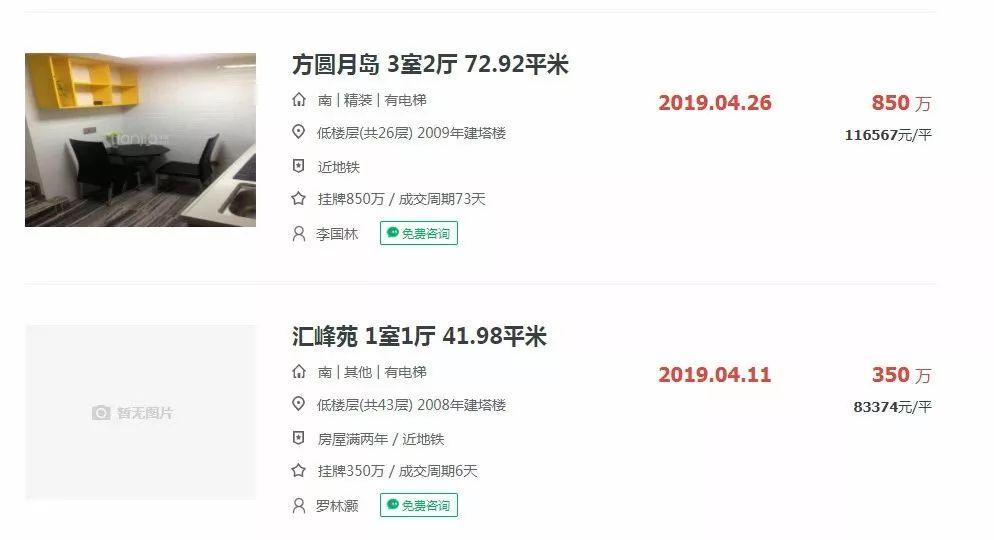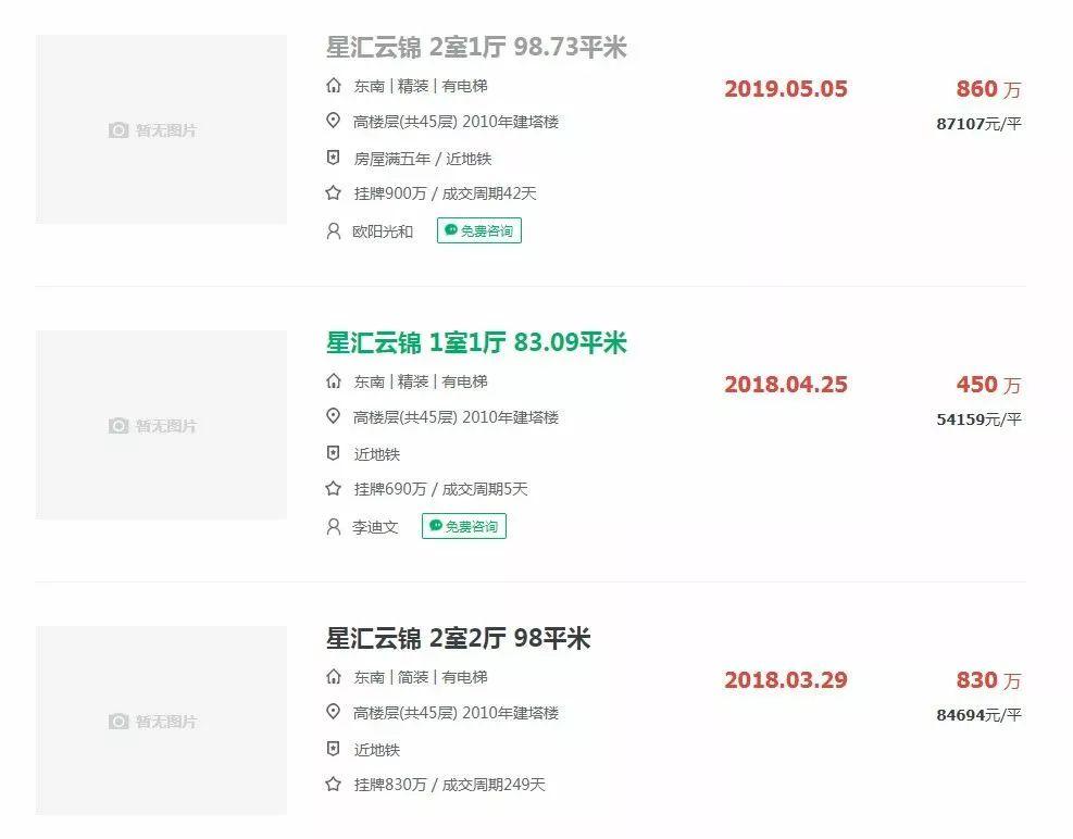 又好比保利心语花园,那套105平三房的挂牌单价为9.3万/平,最初成交为87620元/平,价格向小区均价86095元/平挨近。