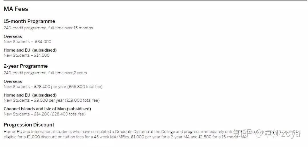 起首我们看一下费用更高的英国皇家艺术学院RCA,因为RCA对峙两年学造教学,所以偏高的膏火是能够理解的。从官网看来仅膏火需要56800英镑。