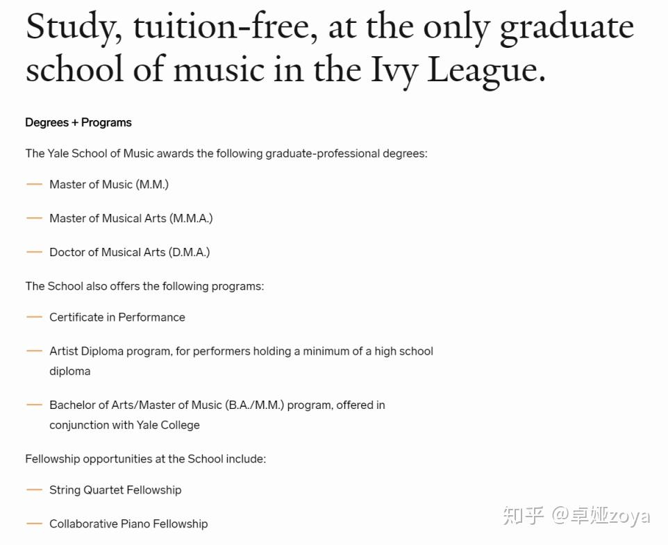 耶鲁大学是在常春藤联盟独一的音乐学院免费进修院校像是耶鲁大学音乐学院的一年膏火近几年本科浮动在5万美圆摆布,硕士浮动在4万美圆,生活费在1.6万美圆摆布,综合下来一年的膏火综合将近7万美圆。
