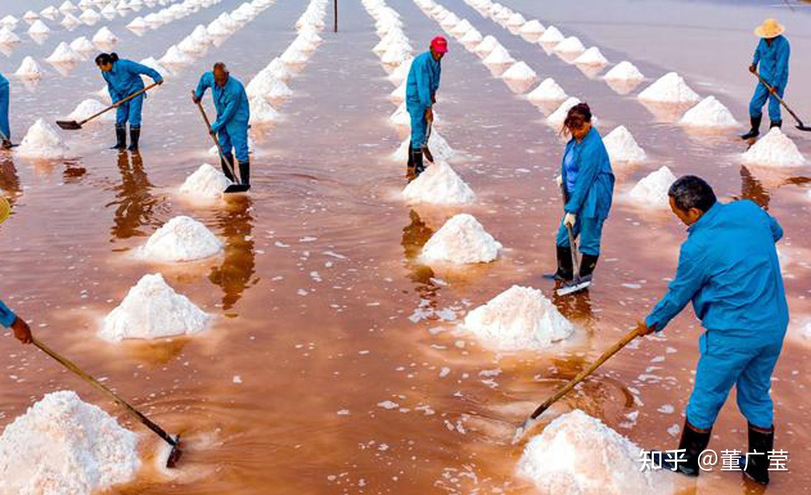 运城河东造盐身手:集卤蒸发、过“箩”除杂、储卤、结晶、铲出。