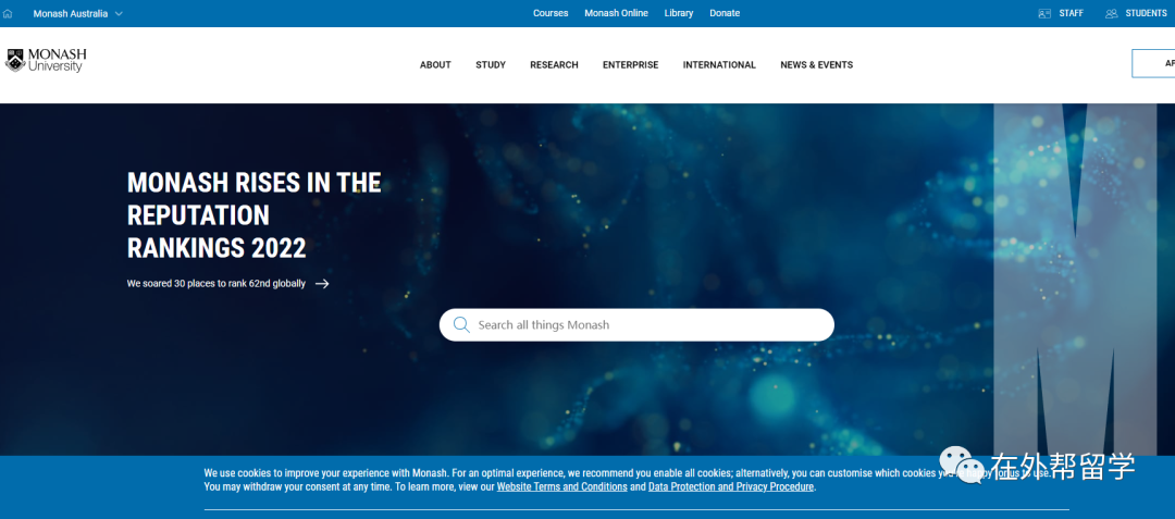 莫纳什大学以其卓越的教学和精湛的科研而在国际享有声誉,莫纳什大学是澳大利亚规模更大的国立大学之一,其综合实力首屈一指,也是出名的密集研究型大学。