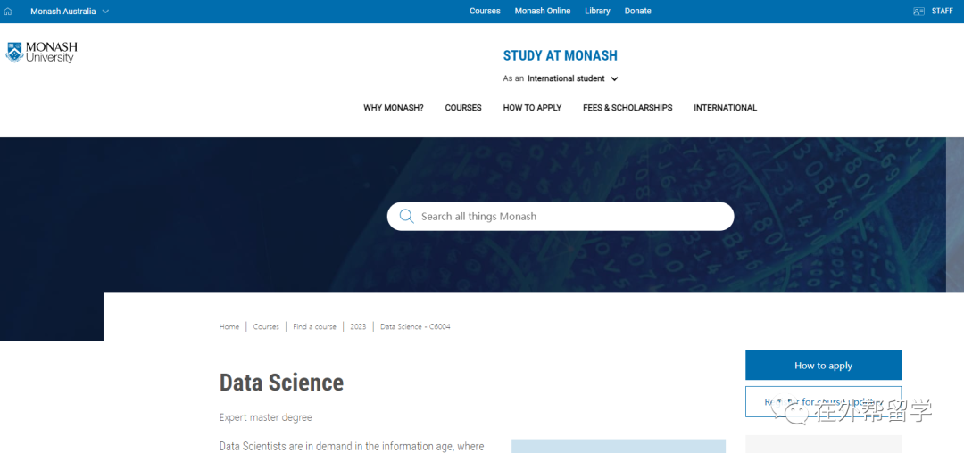 具有WAM 60的同源学科的澳大利亚荣誉学士学位(或同等学历),或经教师批准的同等资格和经历,未被用做进入蒙纳士商学院内其他课程的根底。