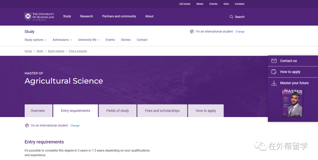 3)或在海外合做机构胜利完成至少 3 年的进修以获得承认的资格,并通过正式路子获得农业科学硕士学位。