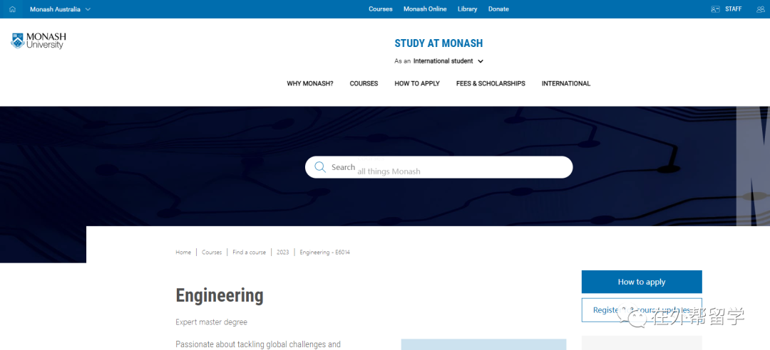 莫纳什大学,世界百强名校,澳大利亚顶尖学府,澳大利亚常春藤名校联盟“八大名校”(Group of Eight)之一,澳大利亚五星级大学。莫纳什大学以澳大利亚出名指导人约翰·莫纳什爵士(Sir John Monash)定名,但本色是一所国度帮助的公立综合性大学。