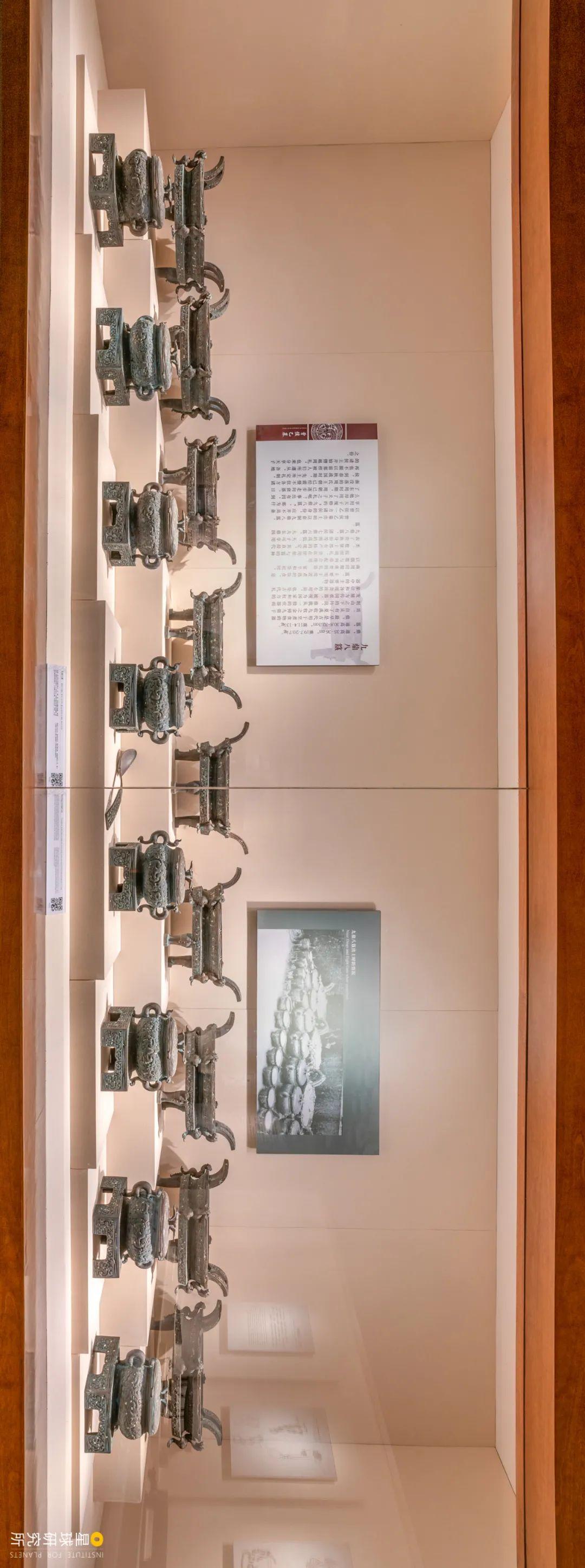 曾侯乙墓的九鼎八簋,图中为复造件;曾侯乙以侯爵殁而随葬九鼎八簋,按周礼已为僭越,图片来源@星球研究所有被誉为“我国最早冰箱”的铜鉴缶,