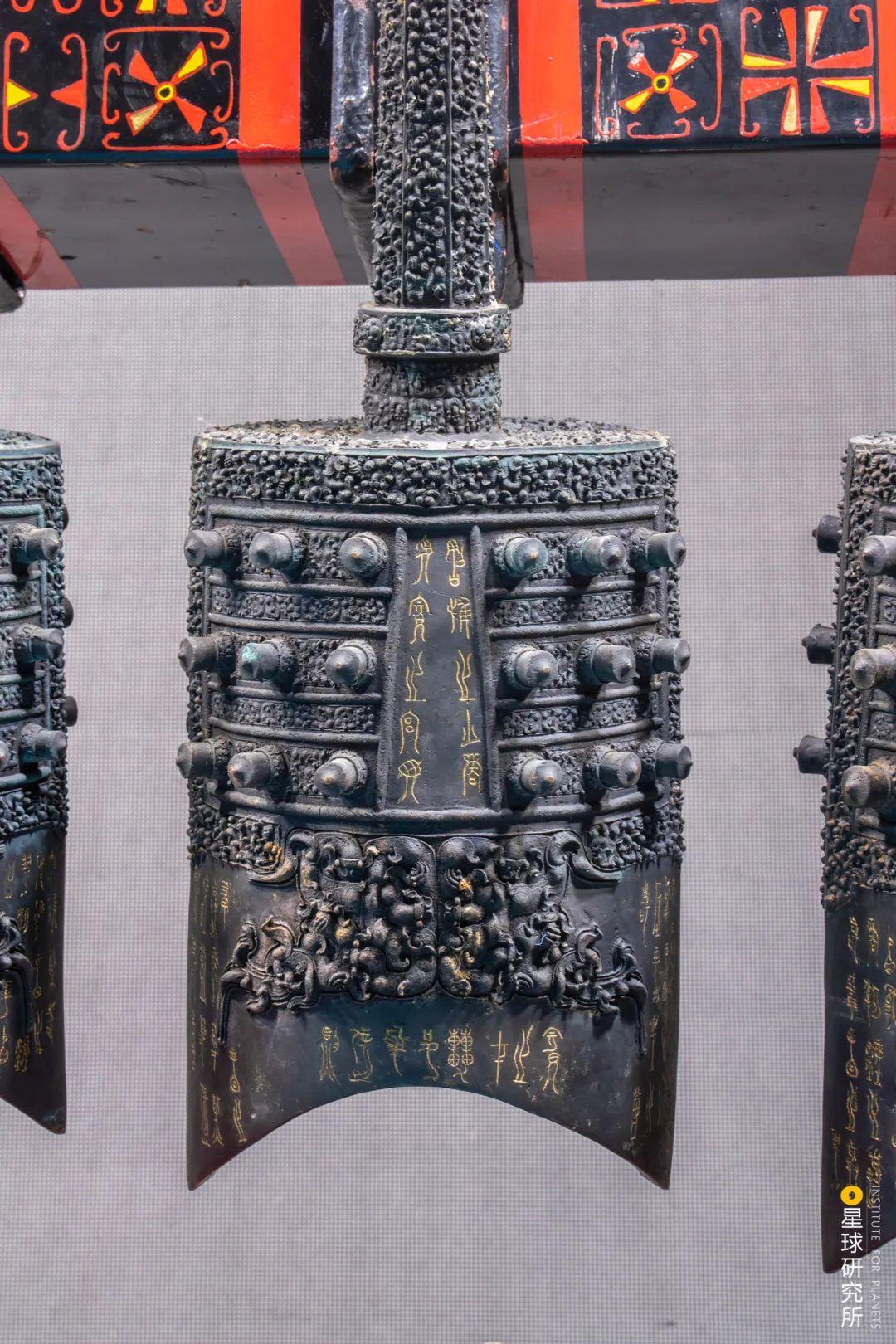 曾侯乙编钟的铭文,图为复造件,图片来源@星球研究所不外,刚刚铸形成型的乐钟还只是一个钟胚,其调子尚不切确、不变,工匠们因而进入下一个环节