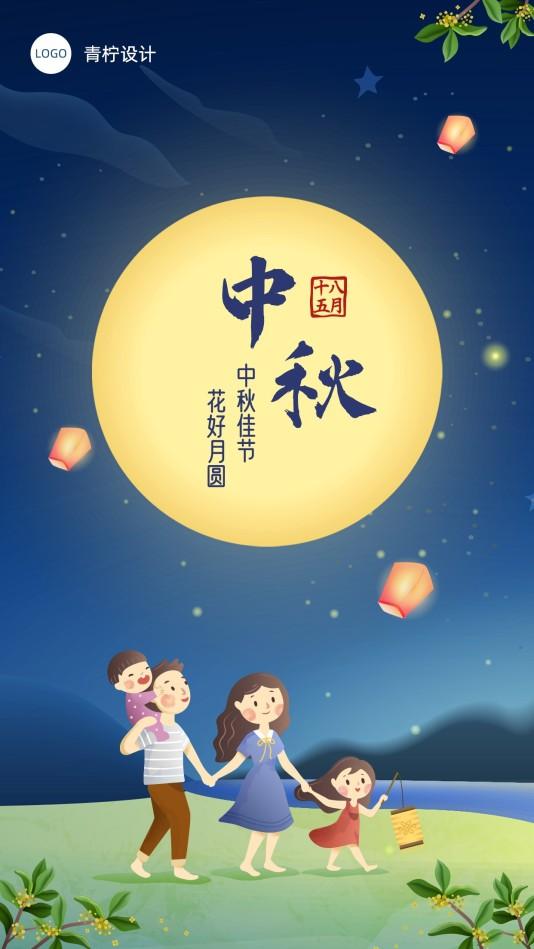 源自青柠设想,可民用四,中秋节意味深长恭喜团聚完竣,幸福安康