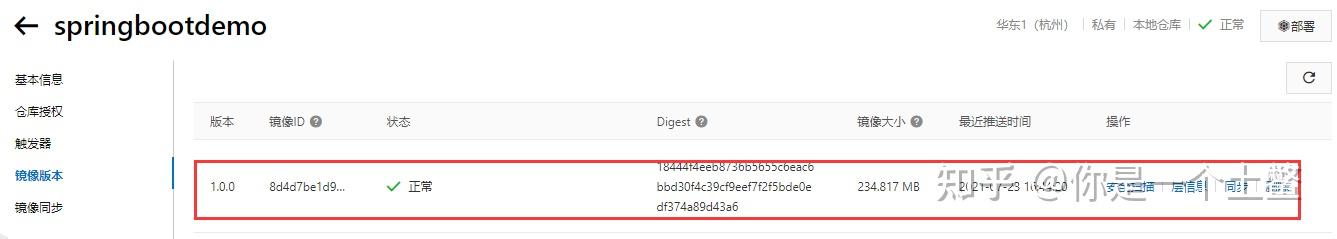 docker push registry.cn-hangzhou.aliyuncs.com/test_respository/springbootdemo:1.0.0那时点击快照版本查阅呵呵快照能否获得胜利上传了: