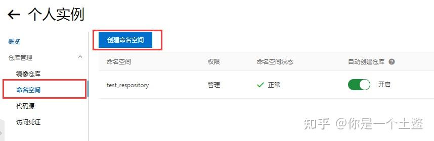开通后步入办理控造台,点击左侧的定名空间,成立两个定名空间: