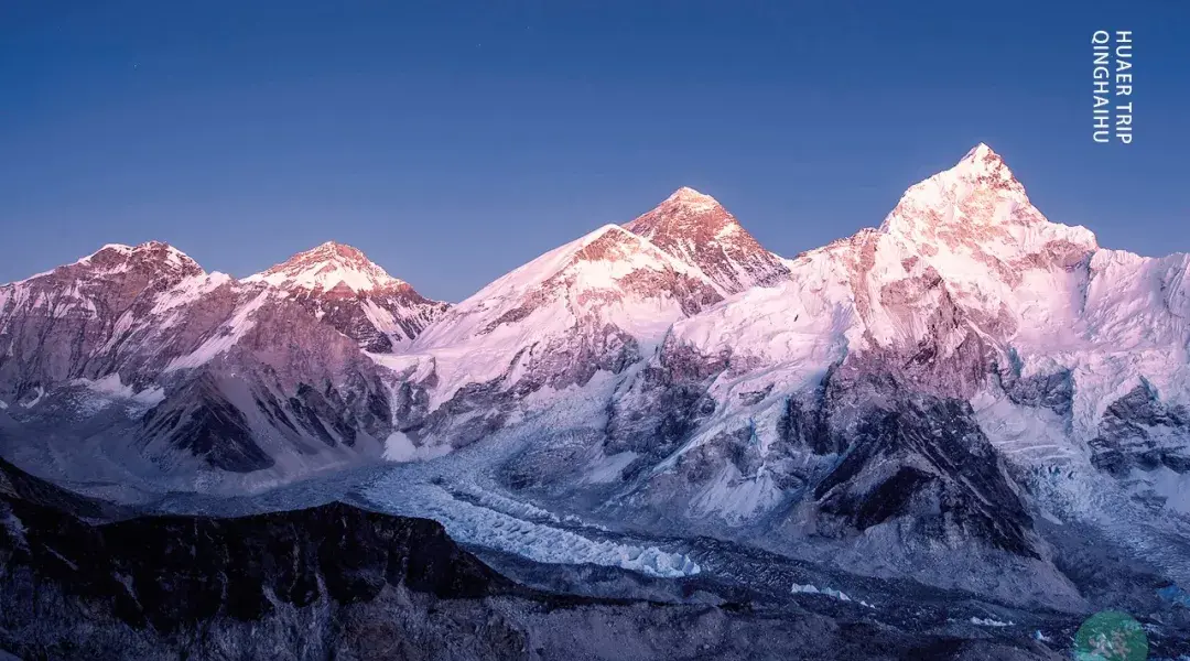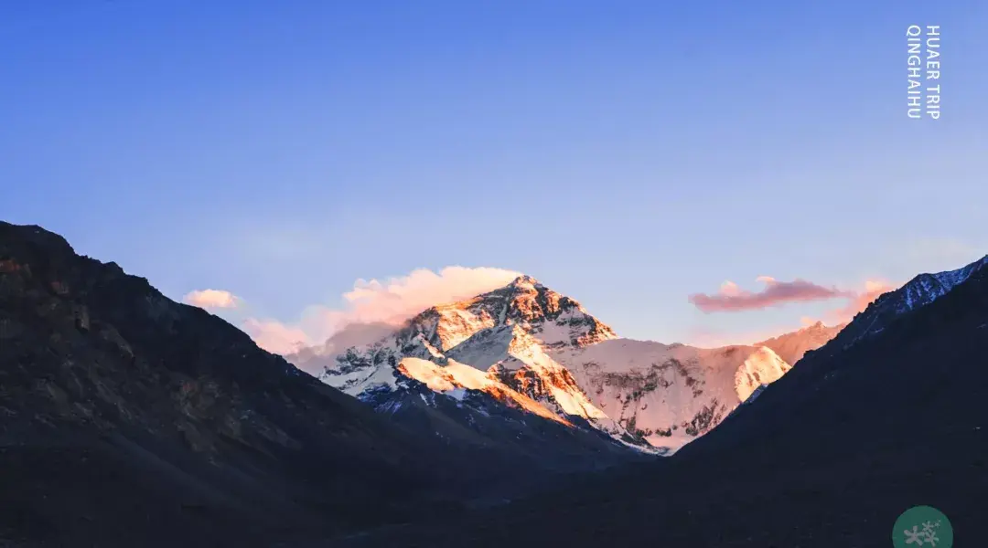 峰顶驻扎地坐落在峰顶山脚下,海拔有5200米,薄暮正好能拍到夕照的光线打在其顶尖。