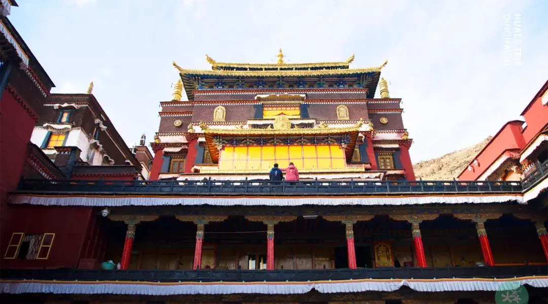 在公路上,远远就能瞥见西尼马日山的扎什伦布寺,金灯在日光下闪闪发光,恢弘之势展露无遗,即便历经光阴洗礼却照旧巍然如新。