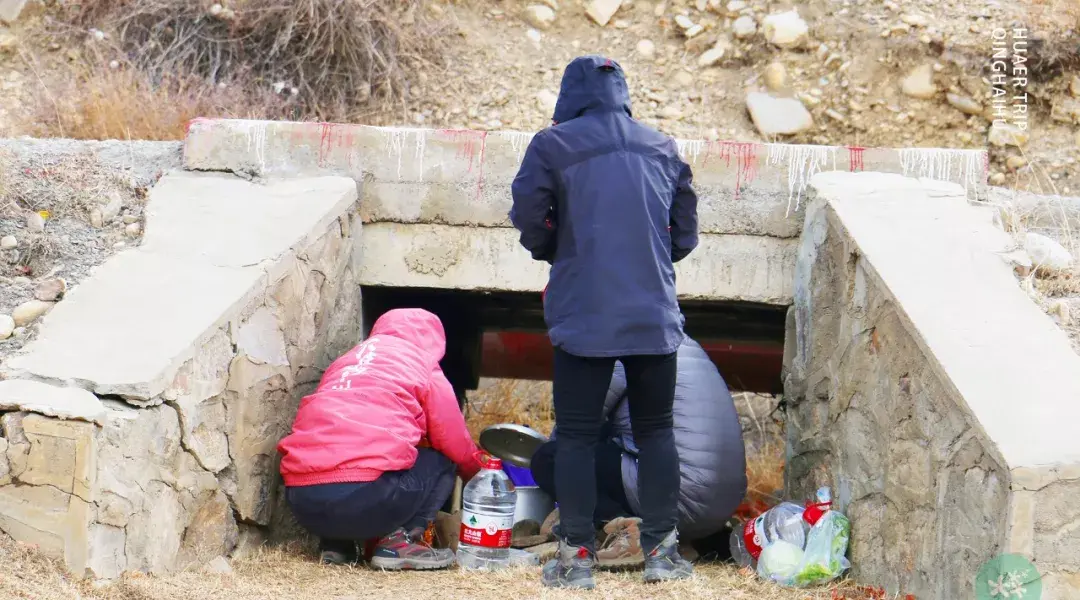 中午,沿着雅鲁藏布江,末于找到了一个不敷1米高的避风桥洞里,非常不测的,在峰顶脚下吃了一碗热腾腾的泡面。
